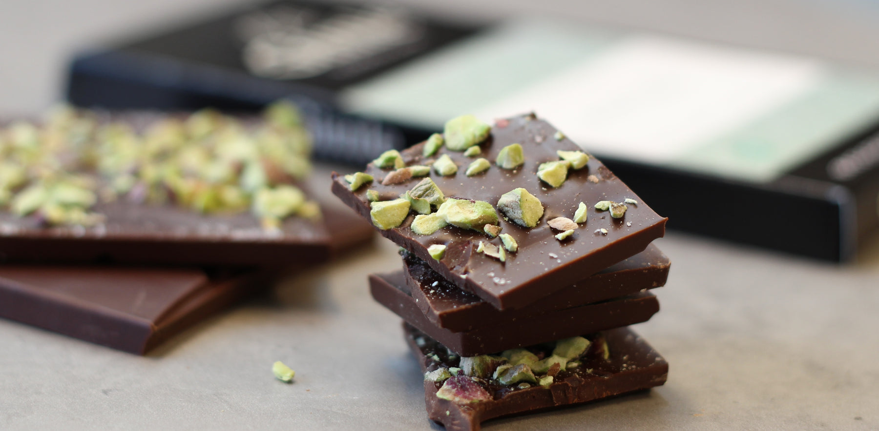 Platen er toppet med pistasj, ikke for å dominere smaken, men for å løfte den. Du får den rene, mørke sjokoladen i front, med et lett og presist hint av nøtter i avslutningen.
